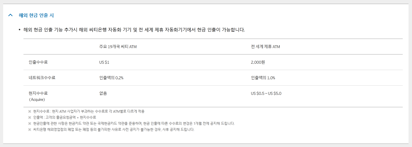 왜 갑자기 이 얘기를 꺼냈냐면, 현지 씨티은행 ATM에서 출금을 한다면 굉장히 싼 수수료로 출금이 가능합니다.