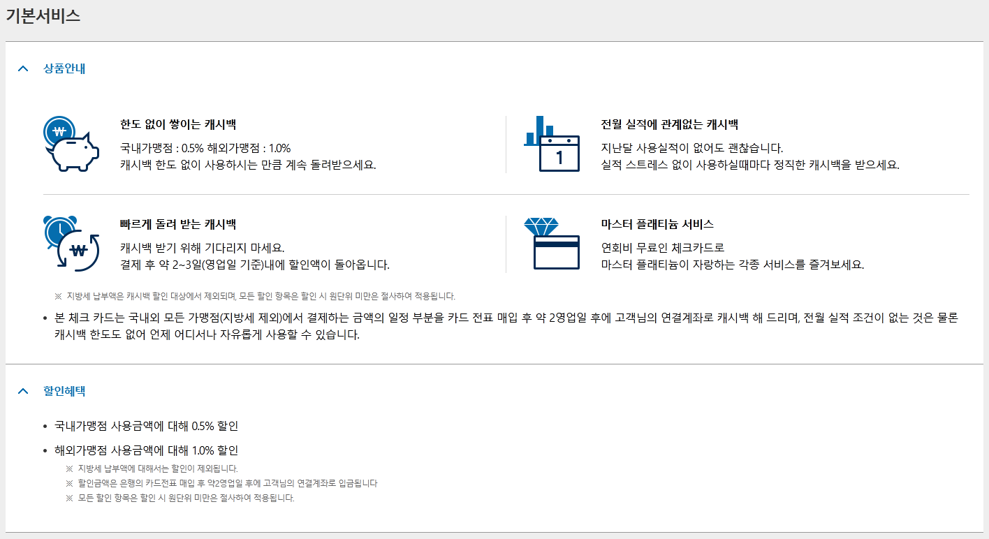 요즘이야 출금 수수료 면제나 캐시백을 해주는 카드가 많지만, 이전까진 이 카드가 최강이었겠네요.