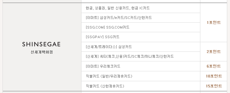 참고로 이 카드를 쓰면 신세계백화점에서의 적립률이 천원당 2포인트라고 합니다.