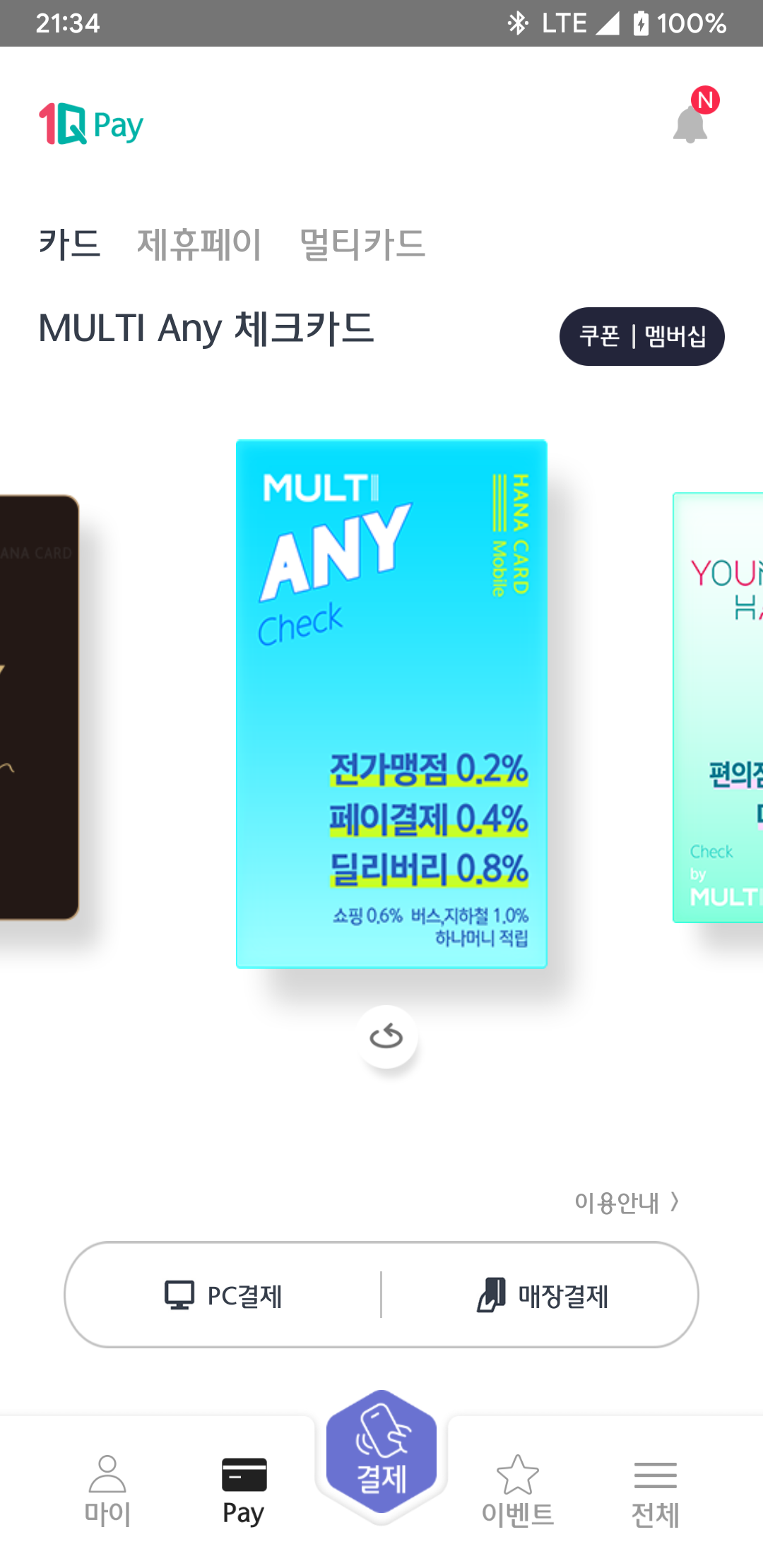 MULTI Any 체크카드라는 멀티 시리즈 체크카드가 딱 하나 있긴 합니다.