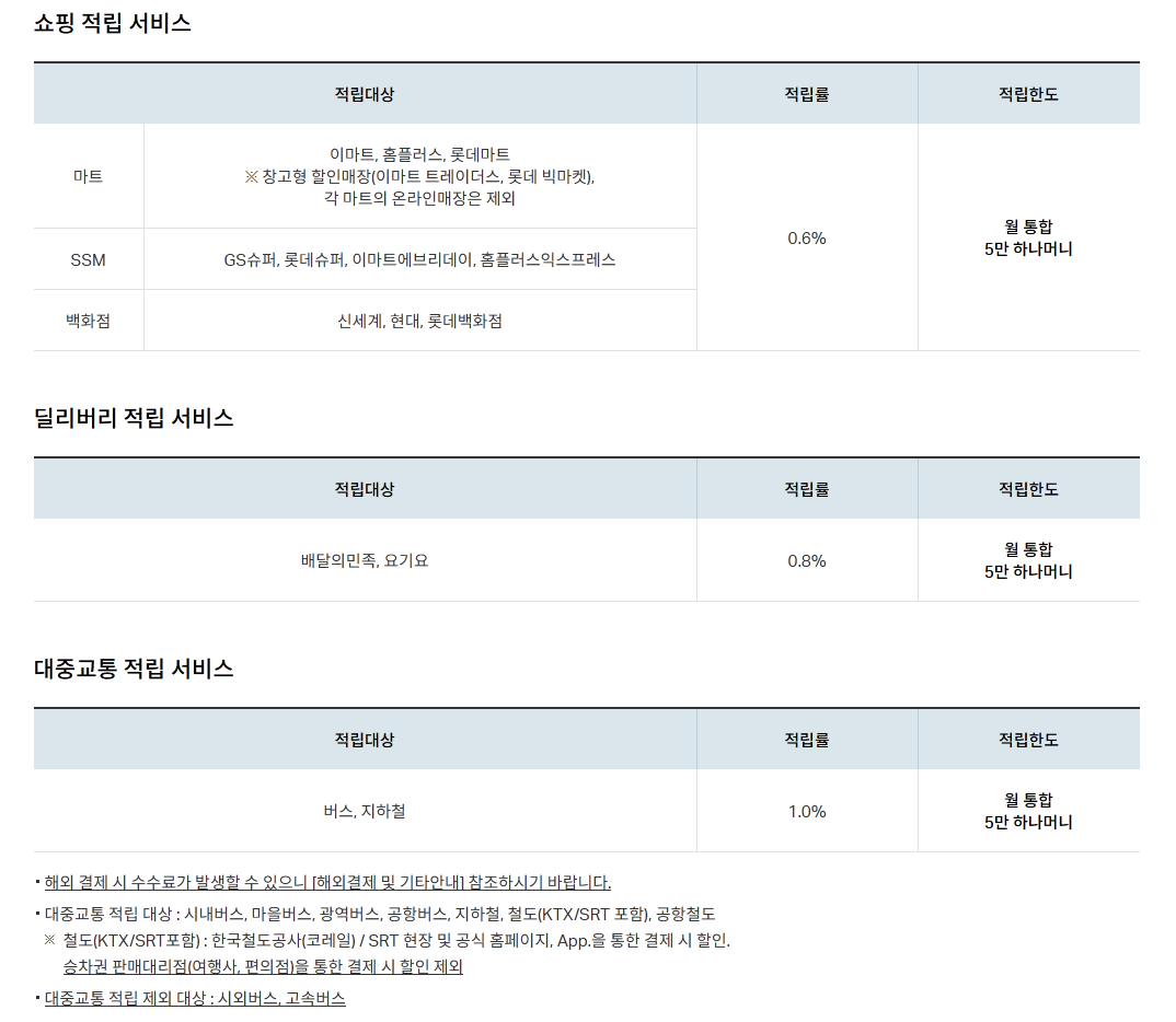 거기에 쇼핑/배달/대중교통 적립도 있는데, 이것도 무실적입니다(!)