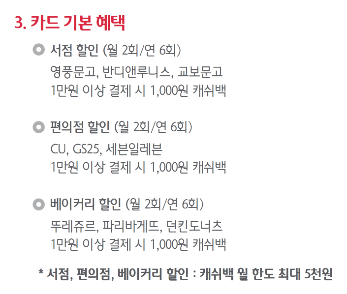 서포터즈와 별개로 카드 자체 혜택도 있습니다.