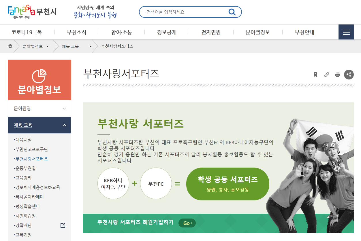 부천사랑서포터즈 | 체육·교육 | 분야별정보 | 부천시청
