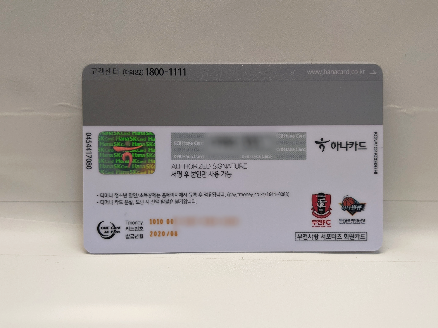 국내전용을 만들 일이 없어서 몰랐는데, 홀로그램에는 아직도 하나SK카드라고 나와있네요.