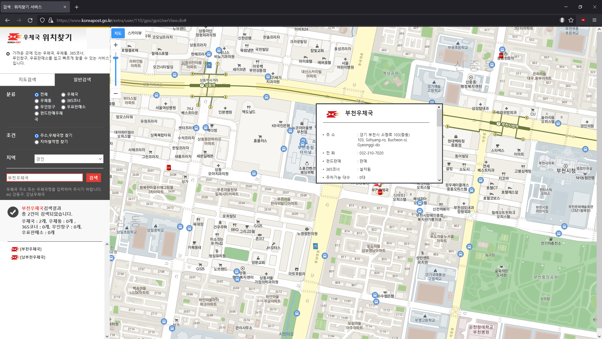 그리고 해당 우편물이 있는 우체국을 검색하면 위처럼 주소와 전화번호가 나오게 됩니다.