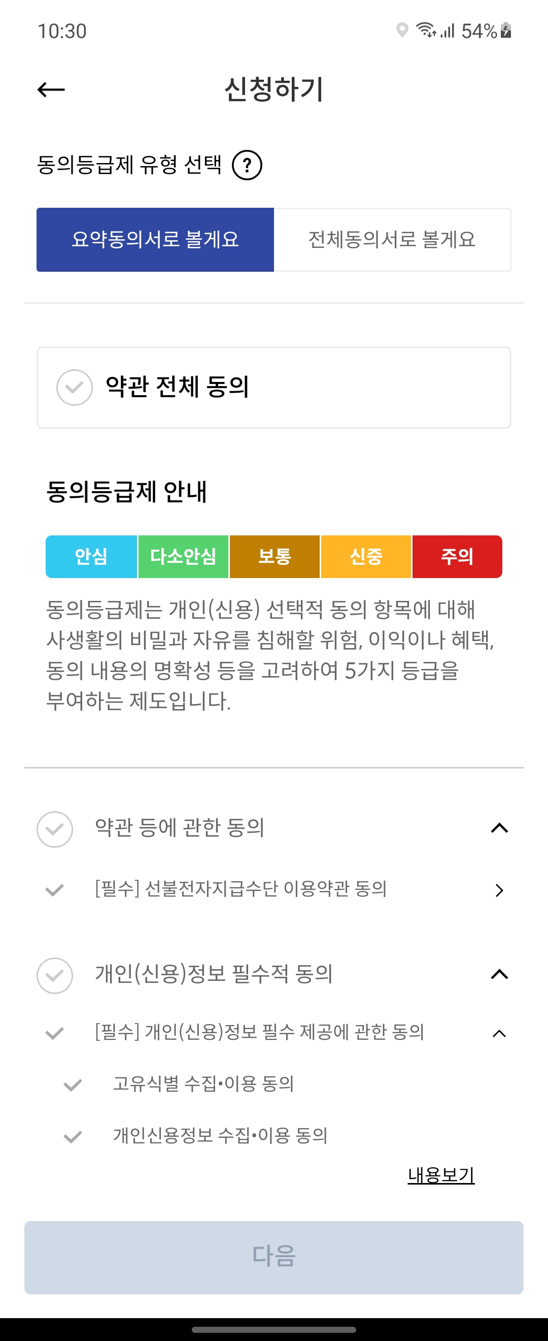 정보를 입력하면 비밀번호 등록 화면이 나오고, 그리고 바로 신청 정보 확인 화면이 나옵니다.