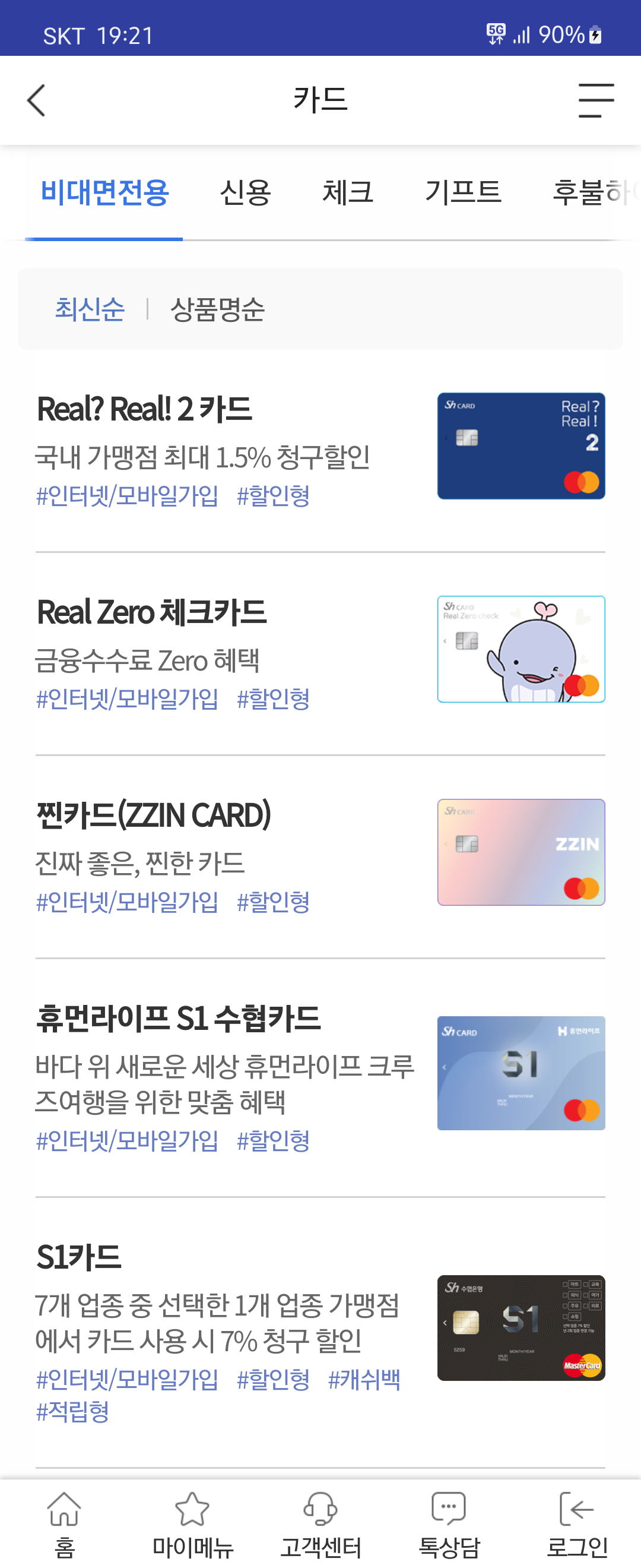 그런데 비대면으로 신청 가능한 체크카드가 이 카드 하나밖에 없더라고요.