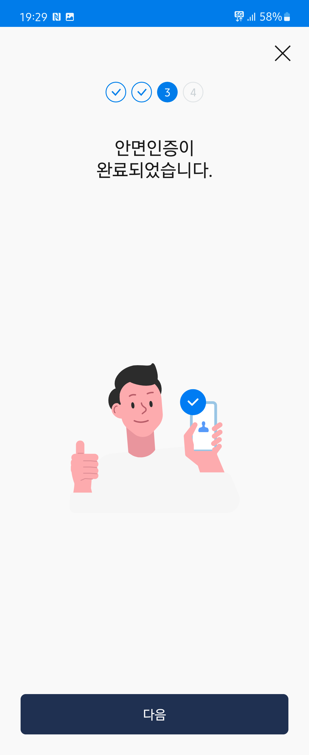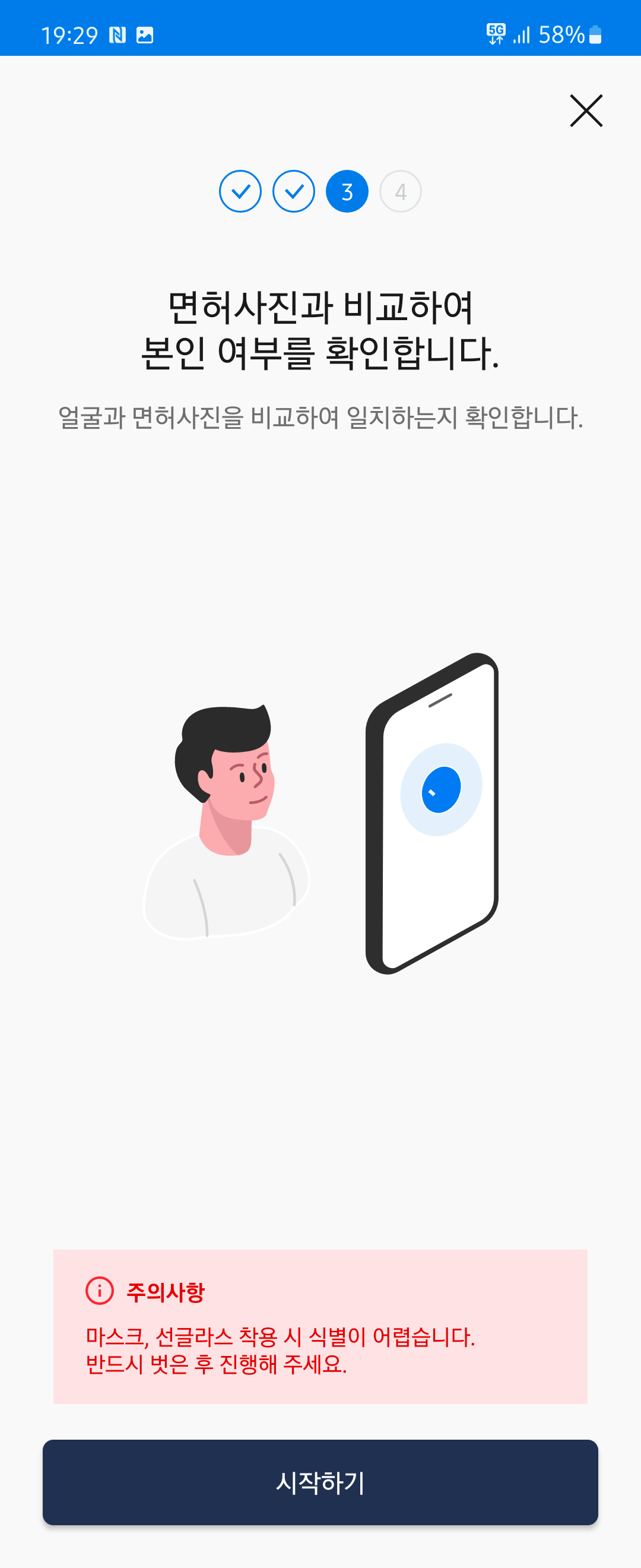 마스크나 선글라스를 벗고 진행하라는데, 안경 정도는 문제없이 인식이 되더라고요.