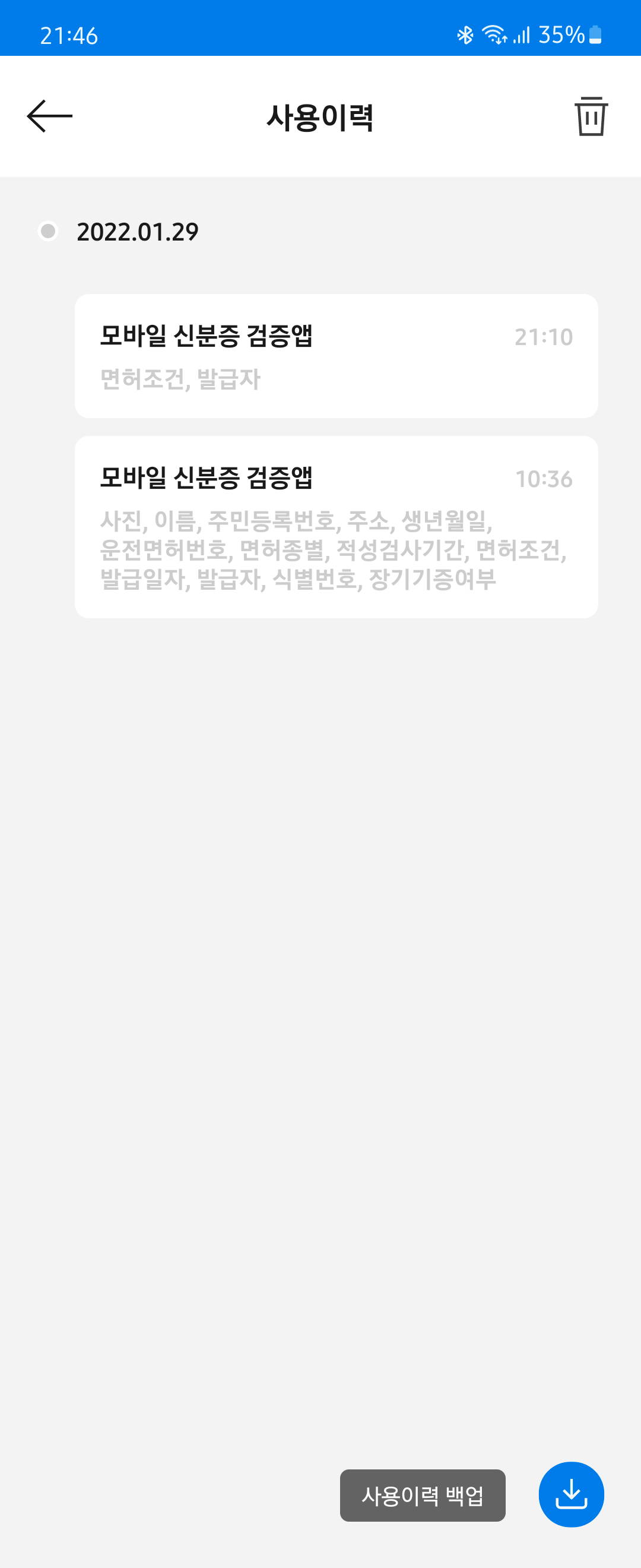물론 당연하게도 모바일 신분증 앱에는 이력이 남는데요