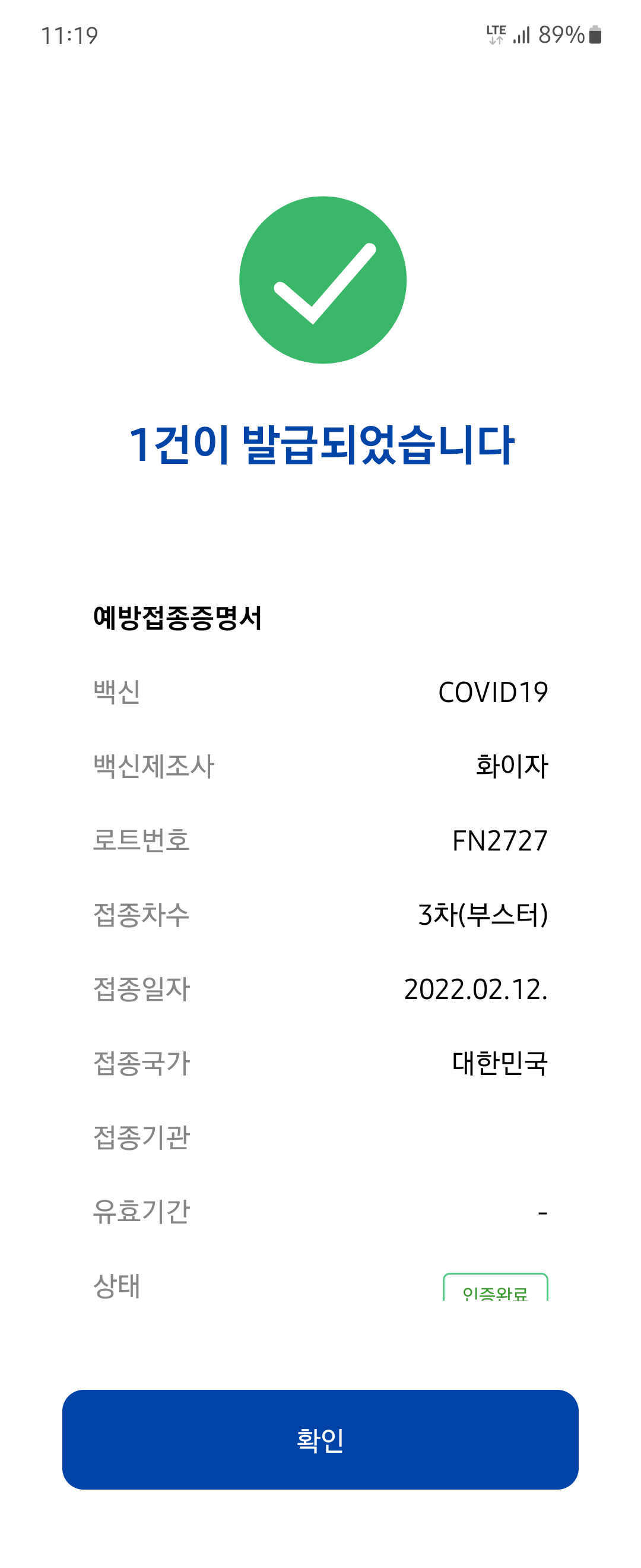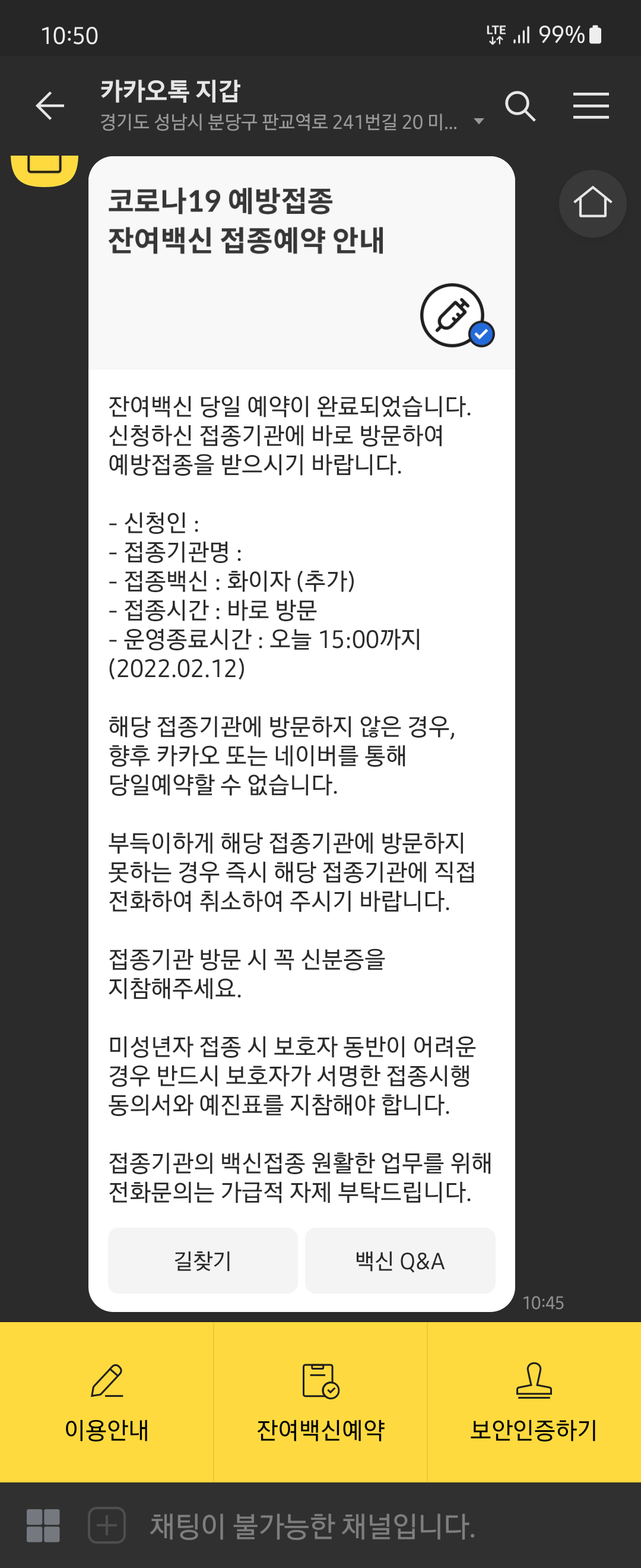 그래서 이번엔 잔여백신을 예약해서 맞았습니다.