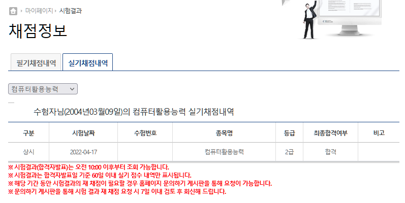 상공회의소 실기시험은 원래 합격하면 점수가 안 나오는데, 이걸 확인할 수 있는 방법이 있더라고요?
