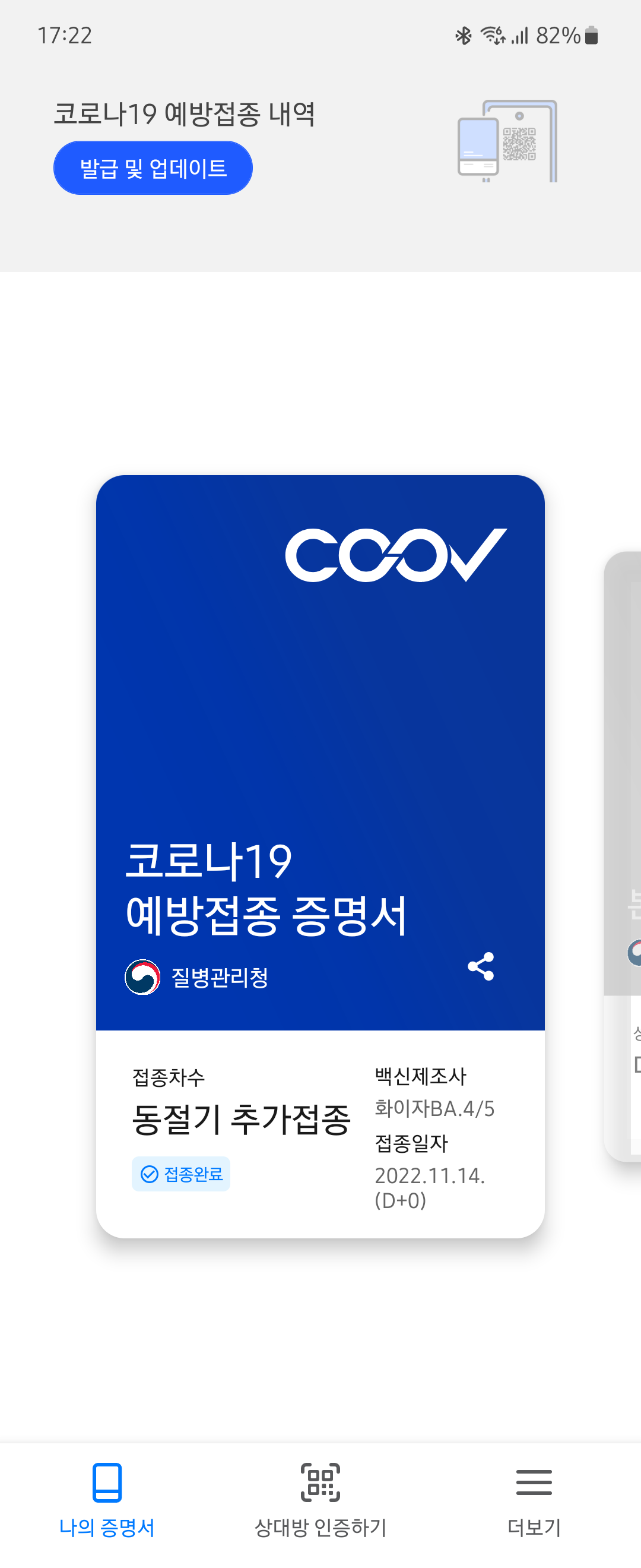 아쉽게도 접종차수는 예방접종증명서/COOV 앱 모두 '동절기 추가접종'이라 표기되네요