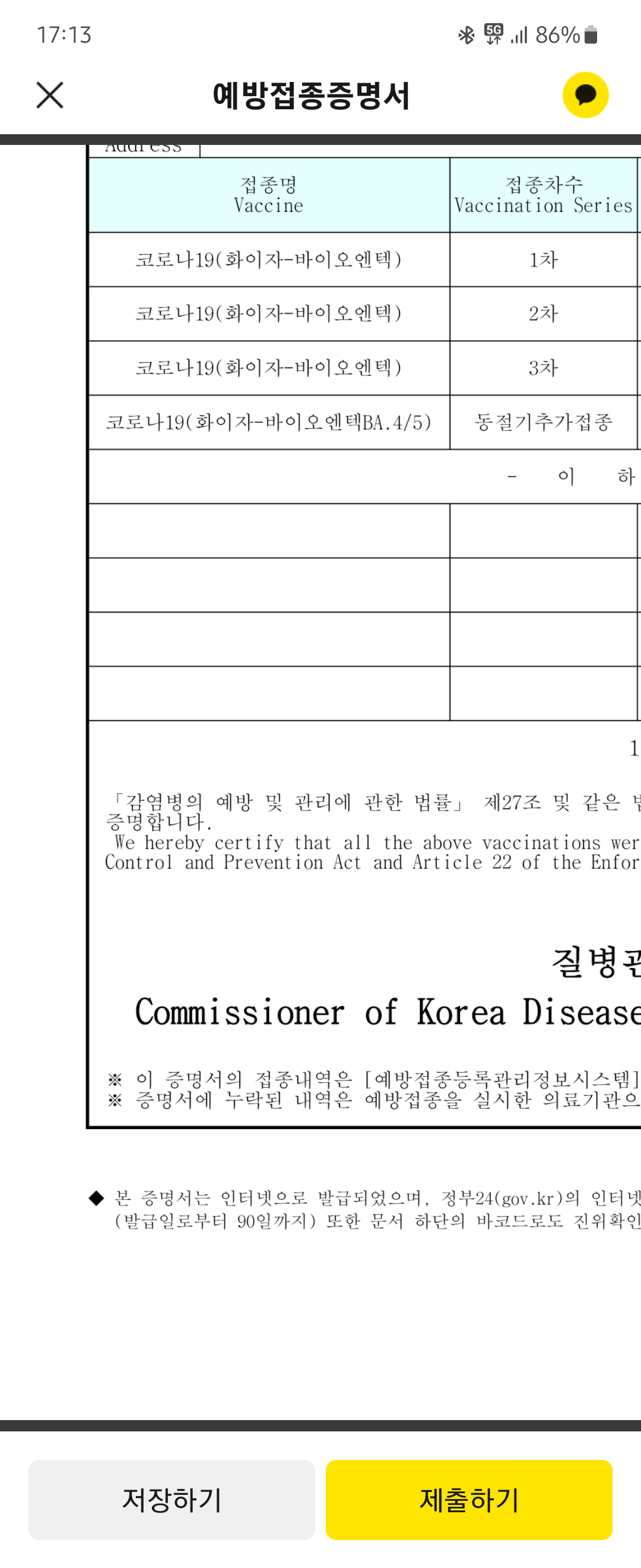 COOV 앱의 국제증명서를 쓰려면 동절기 추가접종 말고 3차 증명서를 써야겠네요