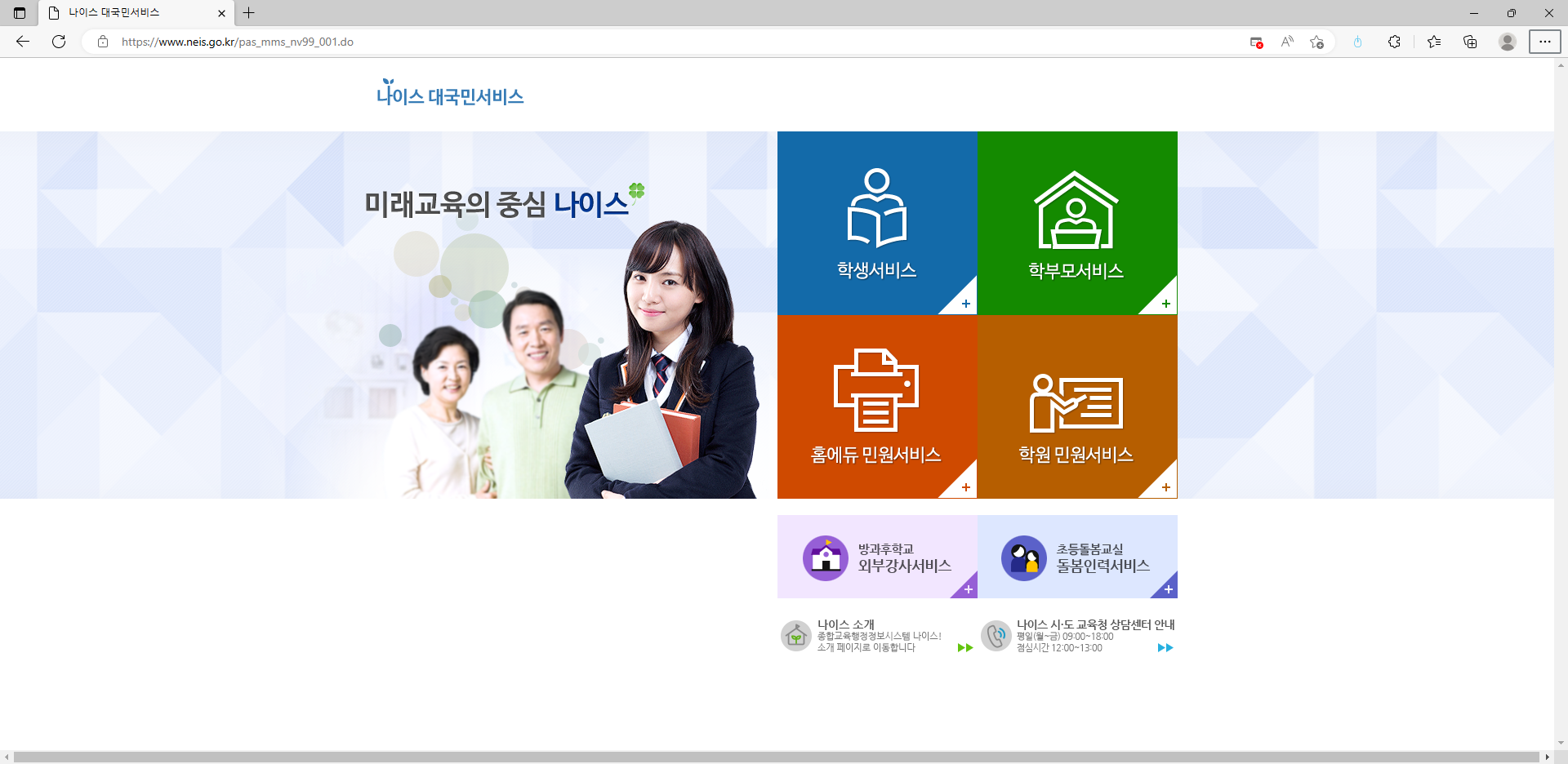 우선 나이스 대국민서비스 홈페이지에 들어갑니다.