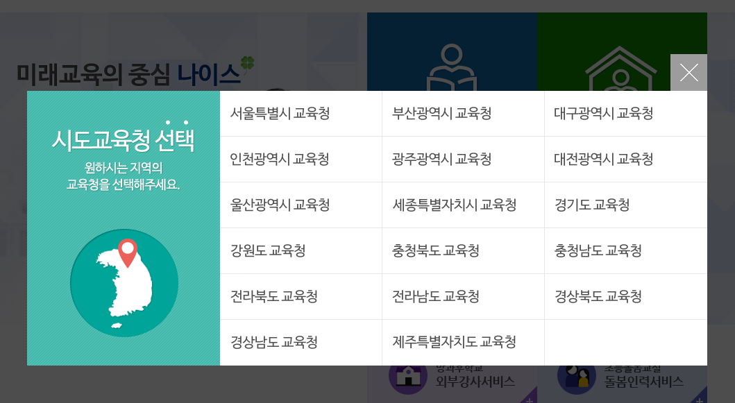그러면 각 시도교육청의 홈에듀 민원서비스 화면이 나옵니다