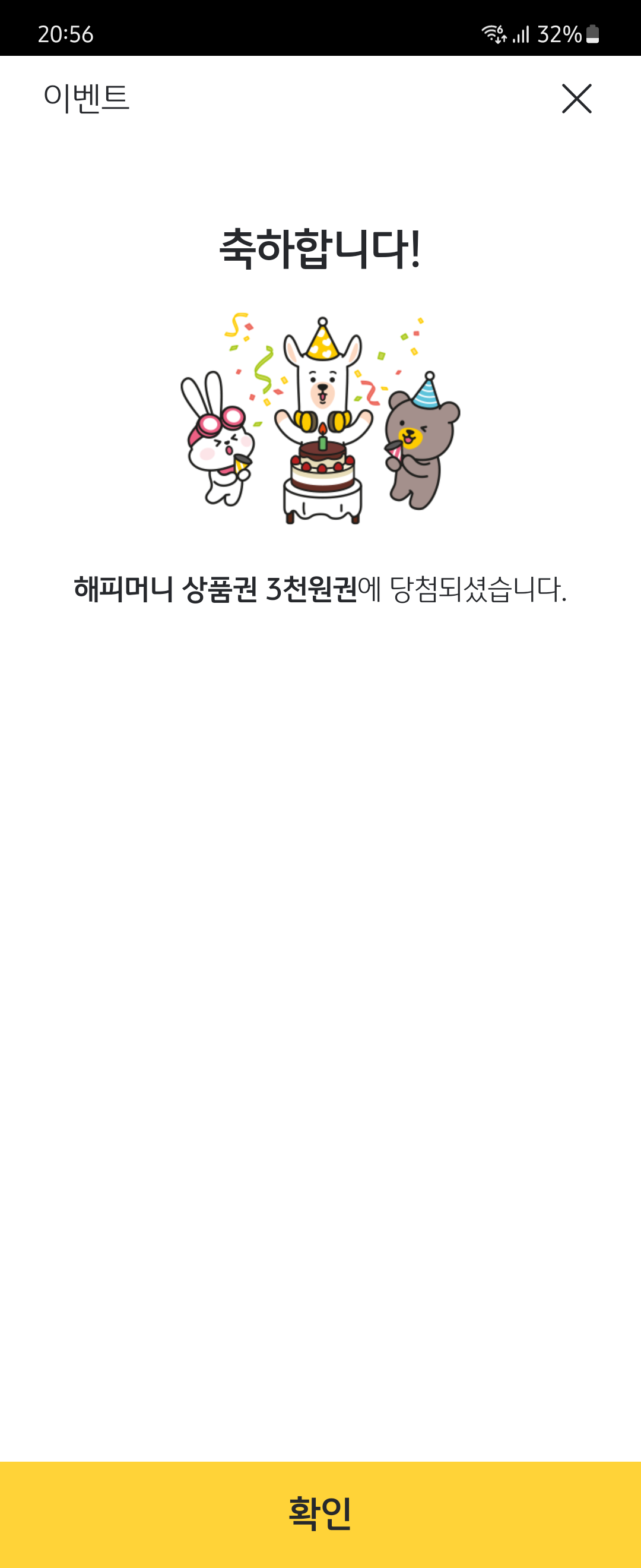랜덤으로 주는 건지 고정인지는 모르겠으나, 일단 저는 이번달은 해피머니 3천원권이 나왔네요