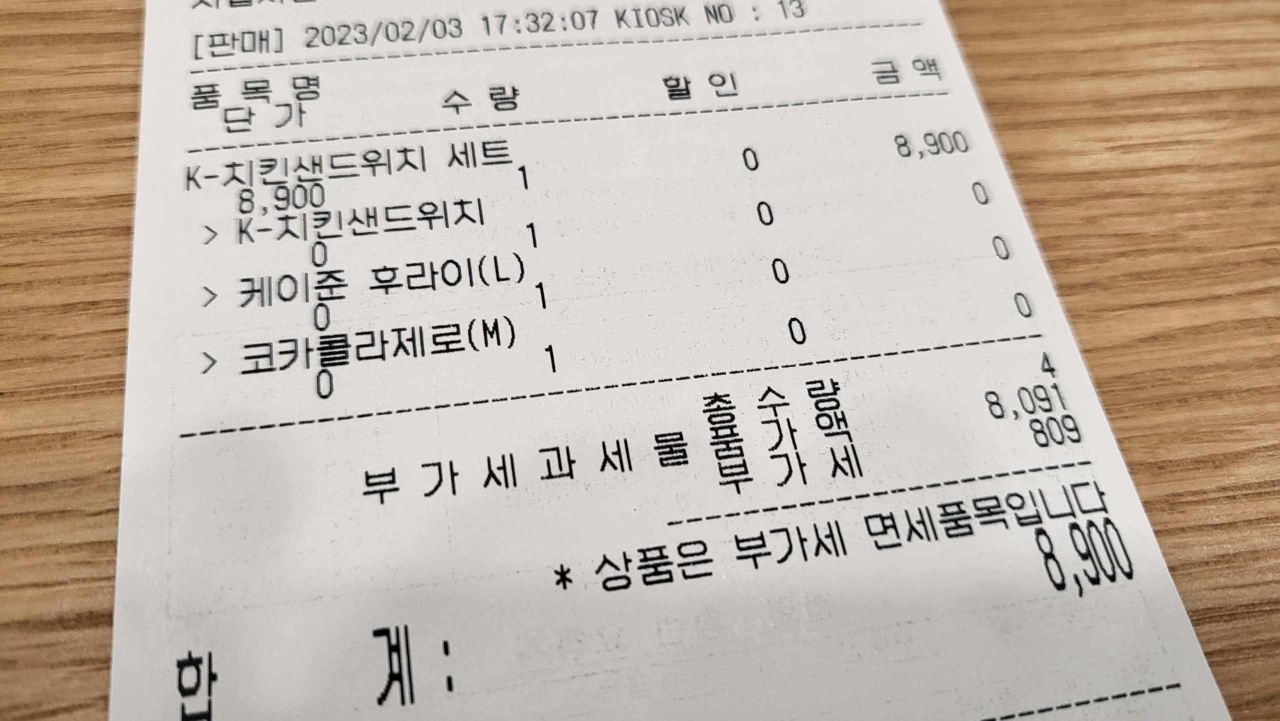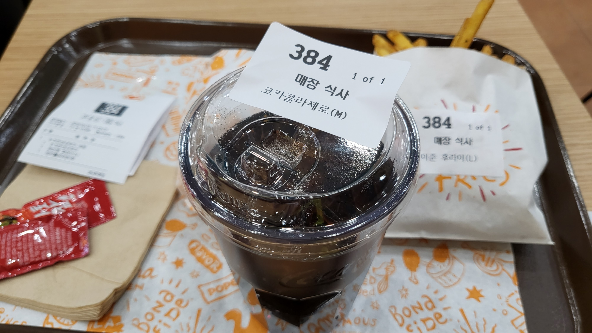 제가 시킨 K-치킨샌드위치 세트는 이렇게 나옵니다