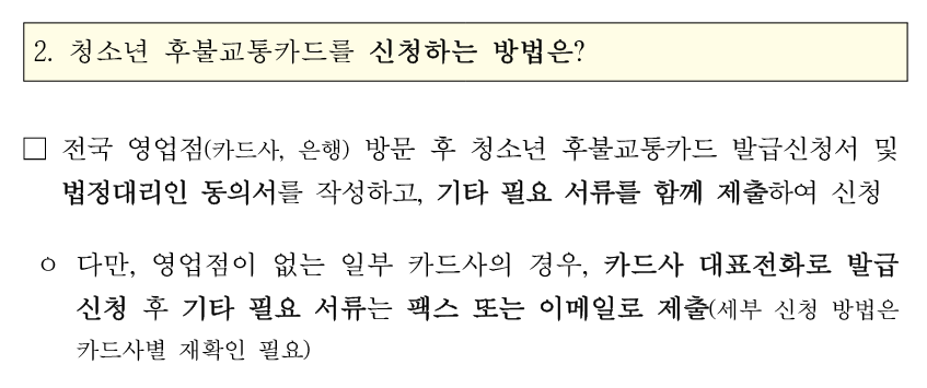 일단 청소년 후불교통카드에 대한 설명은 여기까지이며, 추후 실제로 발급을 진행하고 나서 발급기를 추가로 적어보려고 합니다.