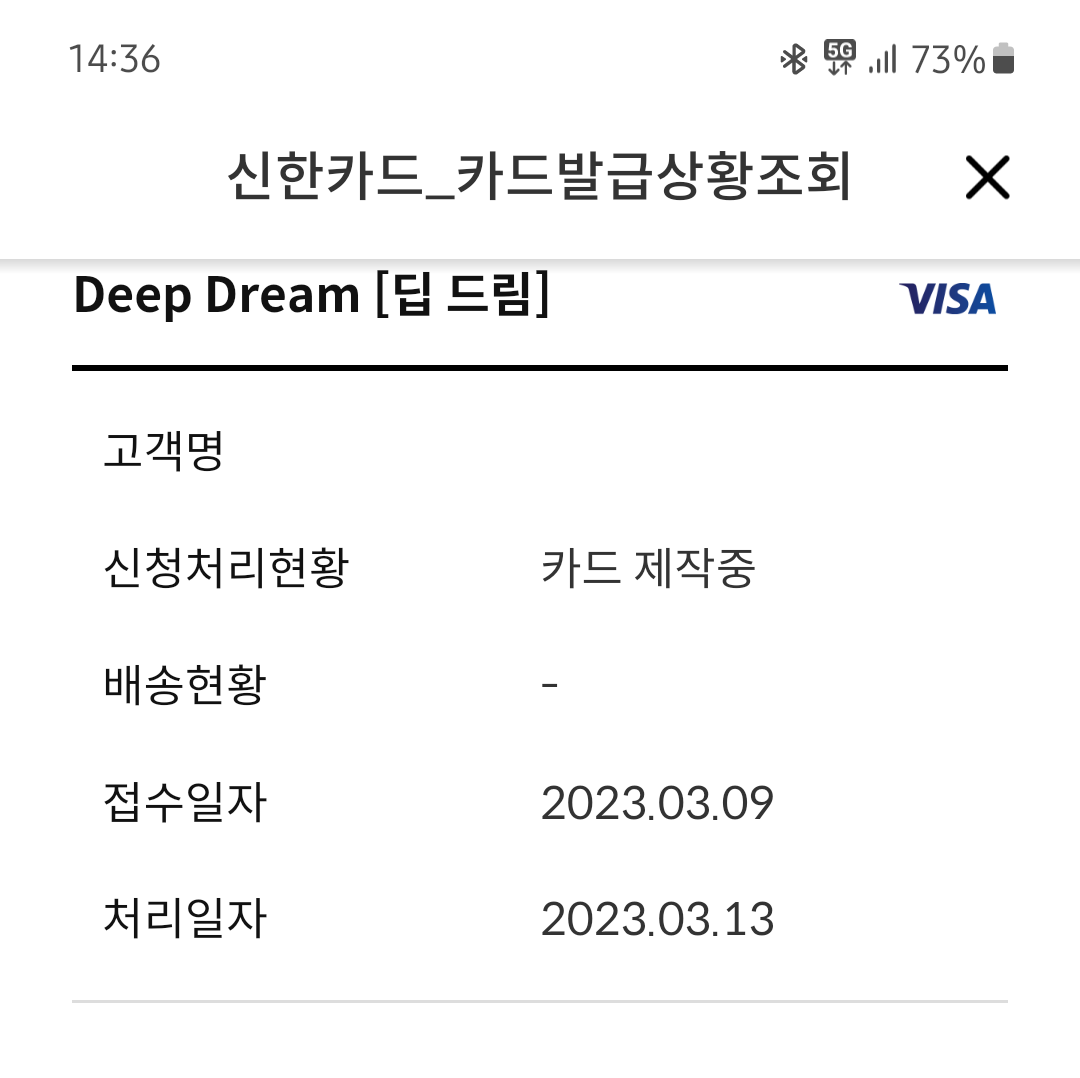 제가 신청한 카드는 글 제목에도 적혀있듯이 신한 Deep Dream이고, 카드 모습은 이렇습니다