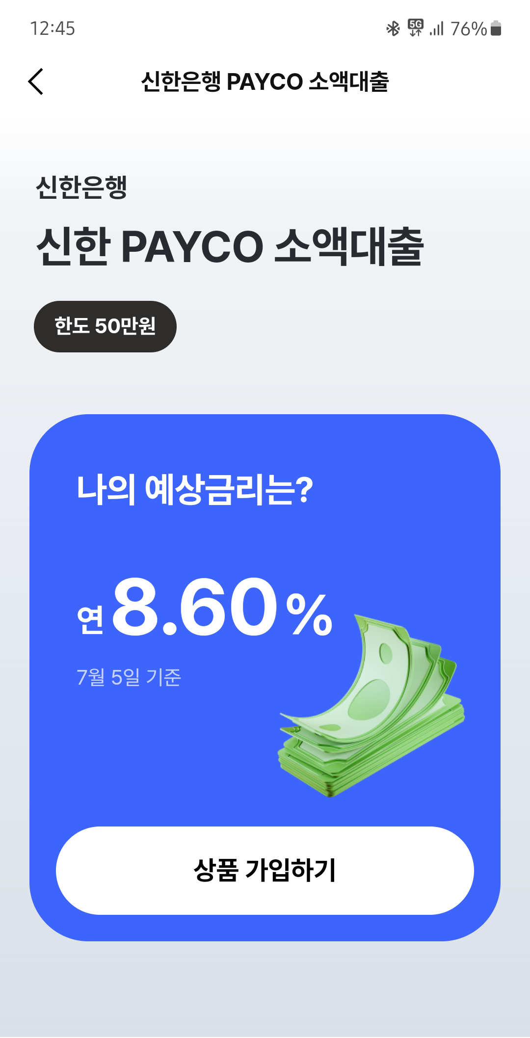 여기서 '신한 PAYCO 소액 대출'을 누르고