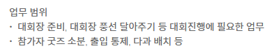 진행 도우미 모집 글에 적혀있는 업무 범위는 이렇게 되어있는데요
