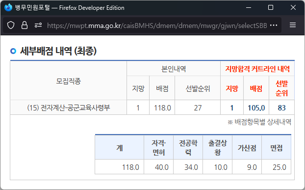제 점수가 최근 커트라인보다 약간 낮아서 걱정을 했는데