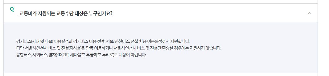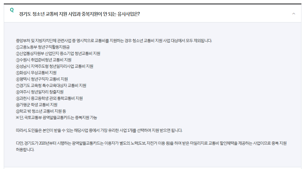우선 첫번째로, 다른 관련사업 등으로 교통비를 지원받는 경우에는 지원 대상에서 제외됩니다.