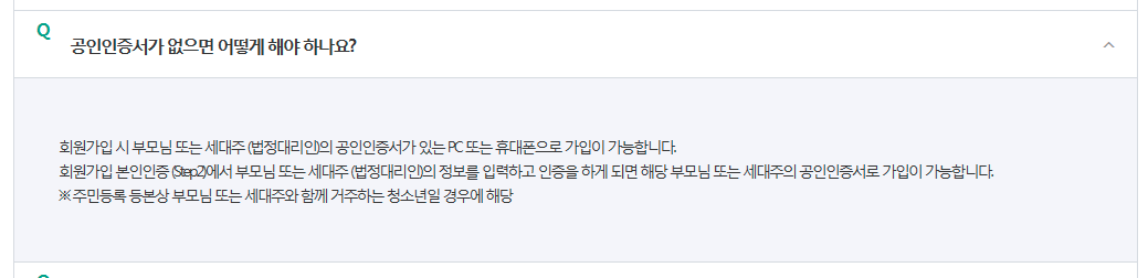 만약 공인인증서가 없거나 만 13세(지역화폐 발급 불가)라면 부모/세대주 명의로 받을 수 있습니다.