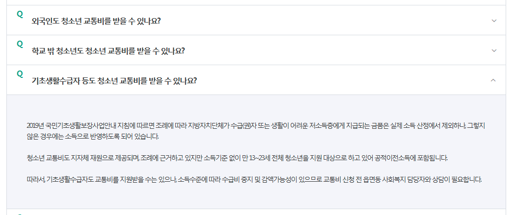 추가로 외국인, 학교밖 청소년(교통비 지원을 받지 않는 경우), 기초생활수급자도 지원받을 수 있습니다.