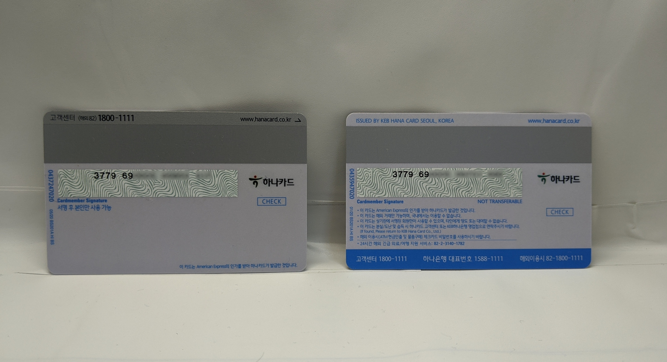 그래도 앞면은 하나카드 로고 위치 말고는 따로 차이가 없는 것 같습니다.