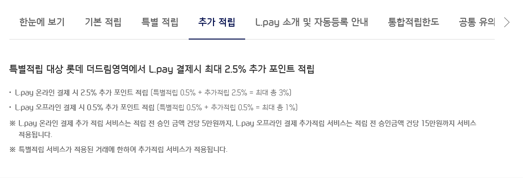 그리고 추가적립은 엘페이로 결제시에 최대 2.5% 추가적립이라고 합니다.