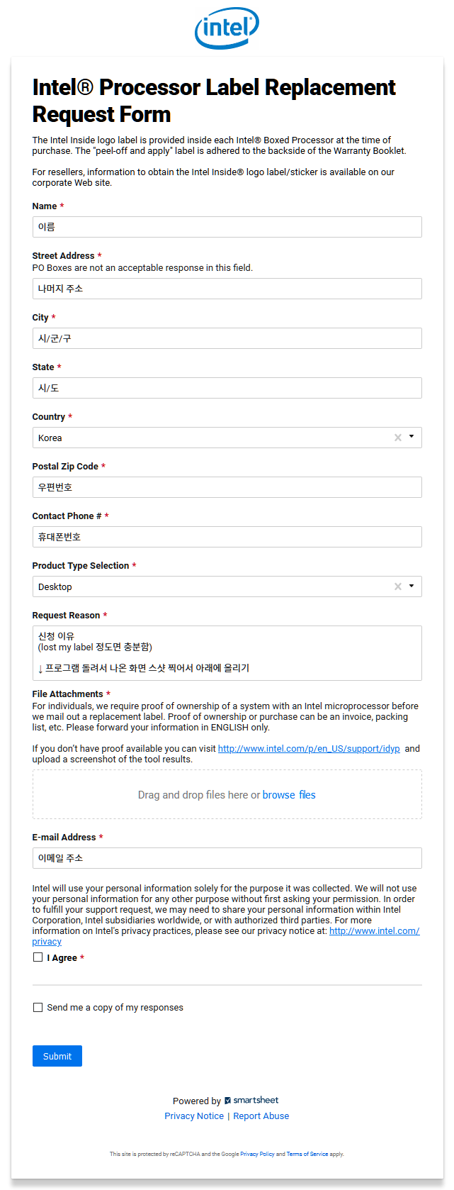 며칠 전, 아는 분이 이걸로 인텔 CPU 스티커를 신청해서 받았다고 하시더군요.