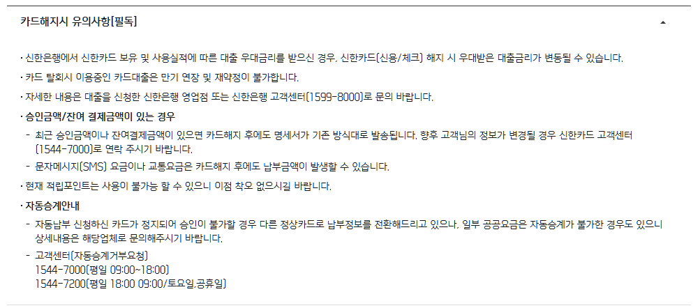 이제 해지한 카드는 알아서 버리시거나 하면 됩니다.