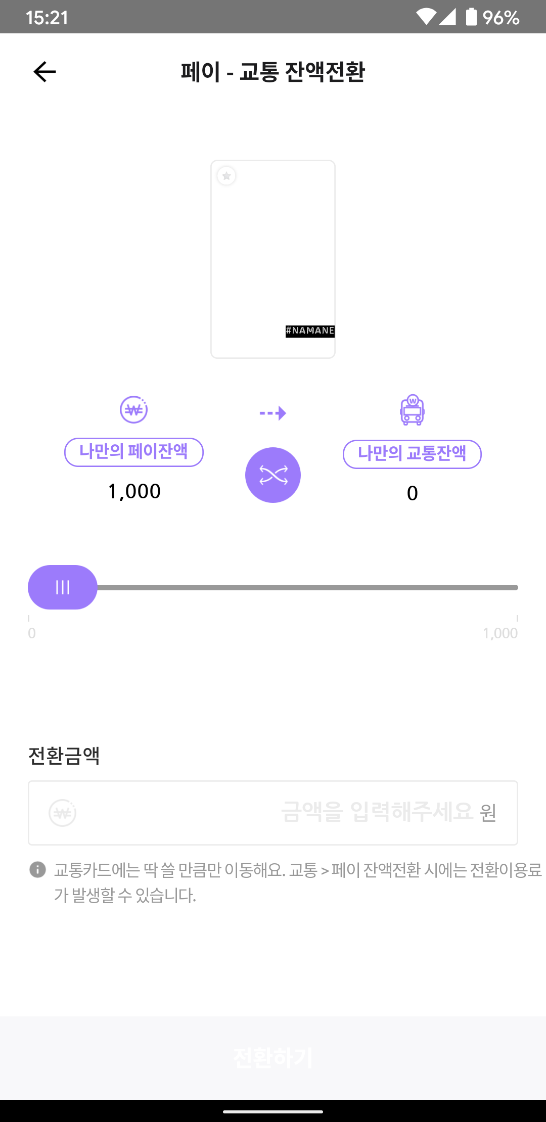 어차피 교통카드로 쓸 일도 없어서 전환해보지는 않았습니다.