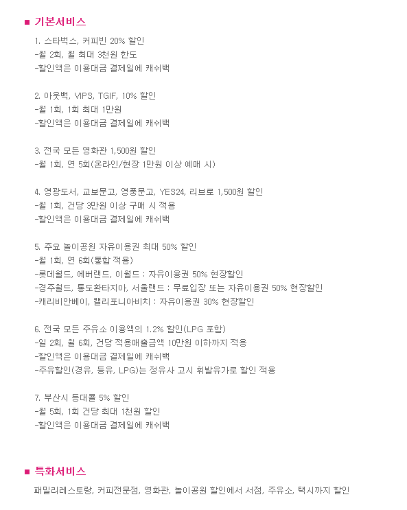 카드 혜택은 이렇습니다.