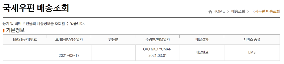 아 그리고 EMS 프리미엄은 사서함 주소로는 접수가 안된다고 합니다.