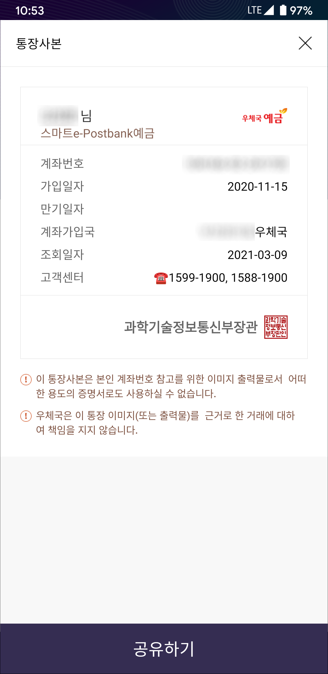 그리고 우체국 계좌도 만들었습니다.