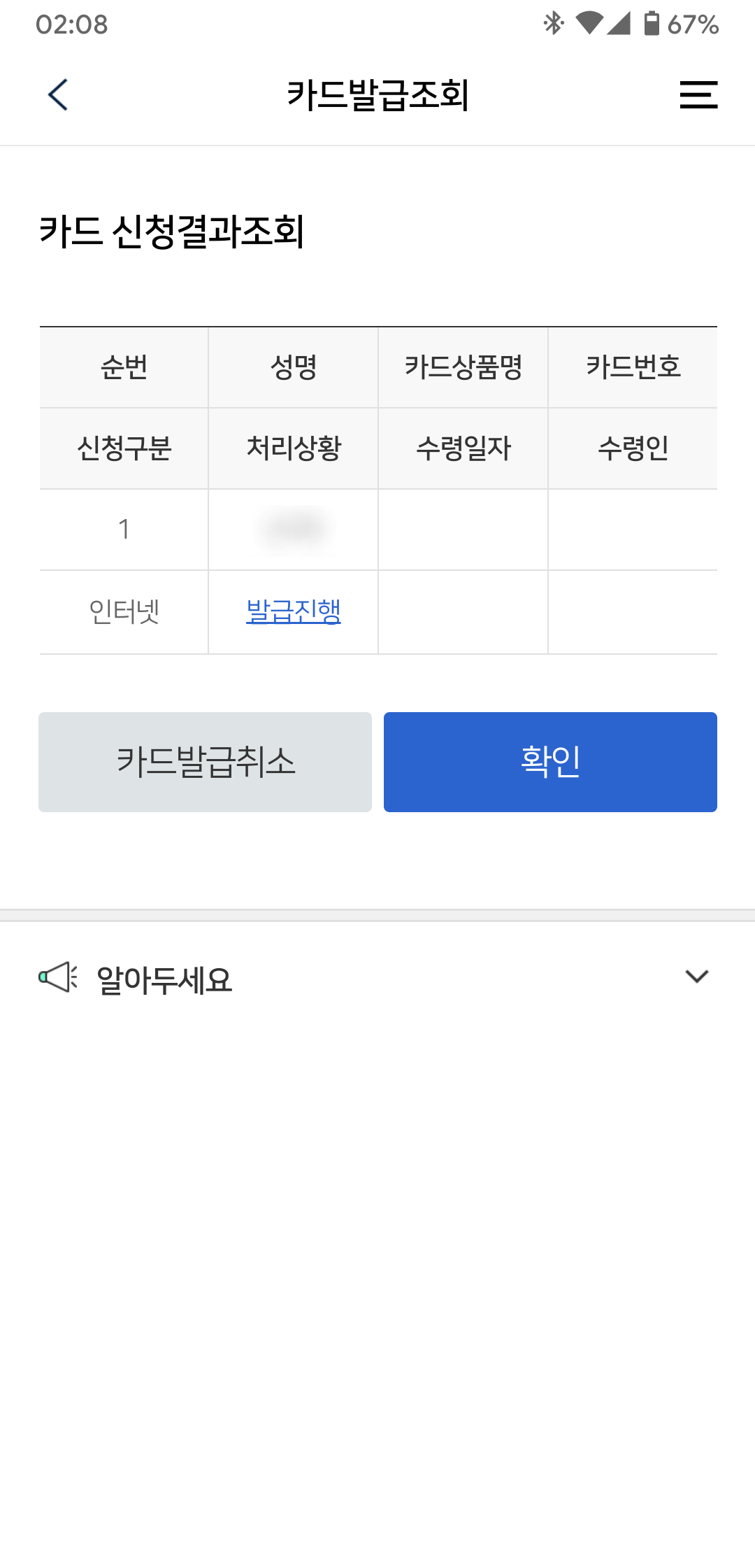 그리고 우리카드에서 카드 하나를 신청했습니다.