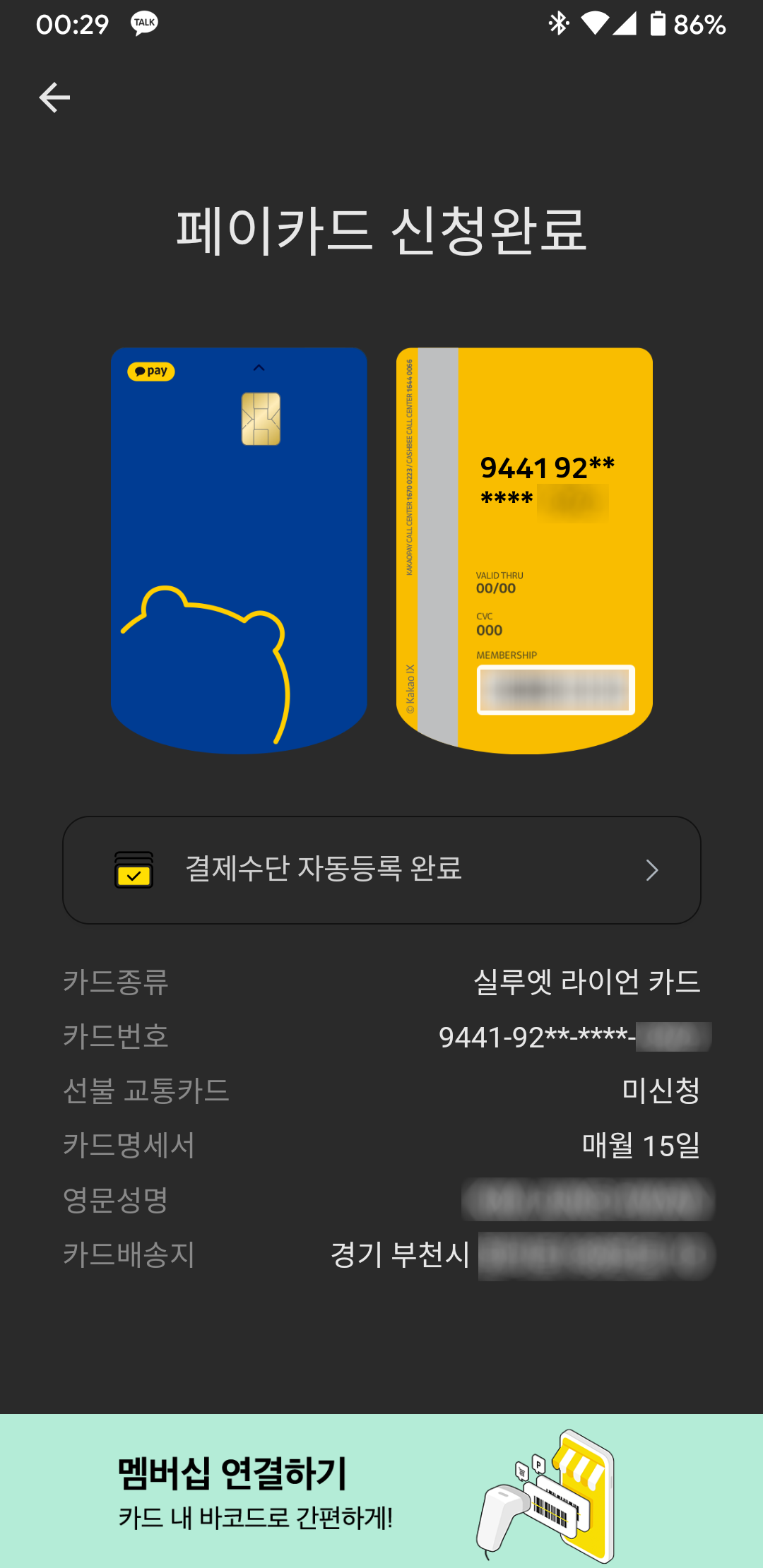 그리고 카카오페이카드도 같이 만들었습니다.