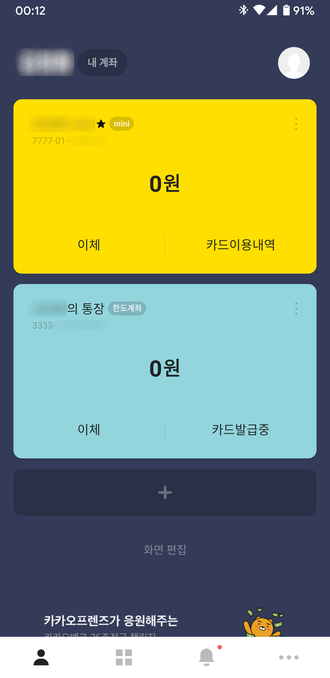 우선 처음으로 만든 건 카카오뱅크 계좌+체크카드입니다.