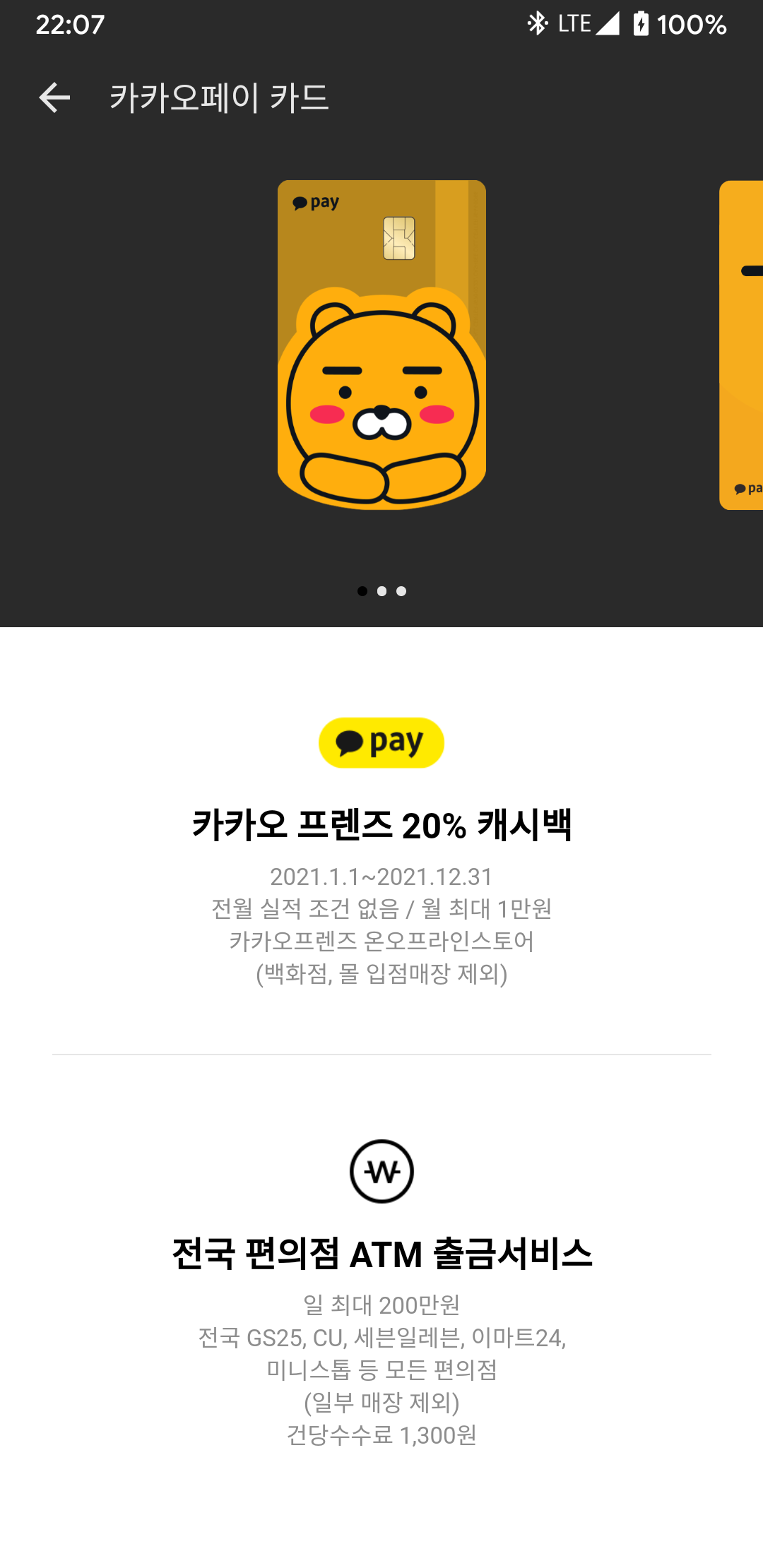 그래도 카카오뱅크 프렌즈 체크카드처럼 카카오페이증권에 연결 가능한 유일한 카드라 남겨두는 의미는 있겠네요.
