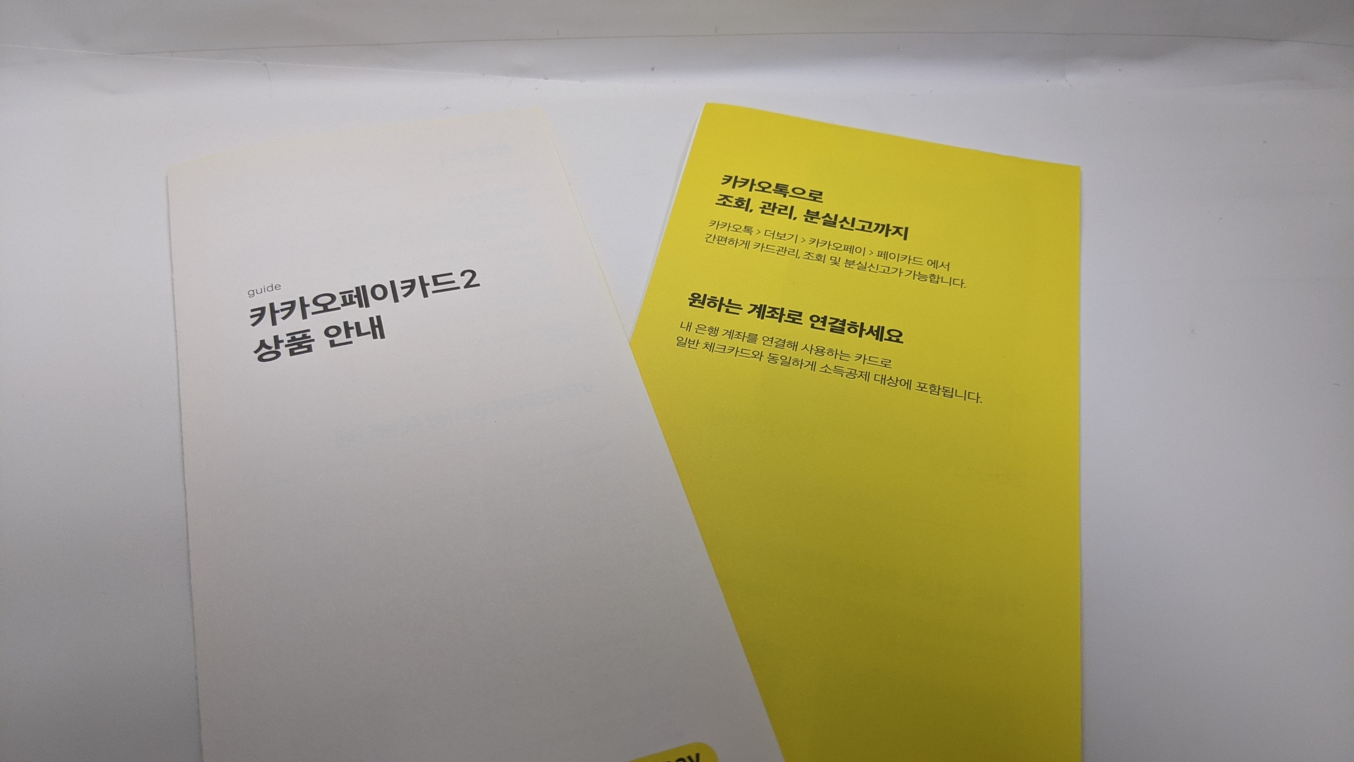 저번에 뜯었던 카카오뱅크 미니 카드는 종이 한 장이 끝이던데, 이건 상품 안내장이 들어있습니다.