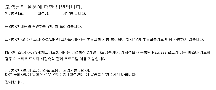 스타와 Be*Twin 체크카드의 K-Cash형 상품이 발급이 중단된다고 합니다.