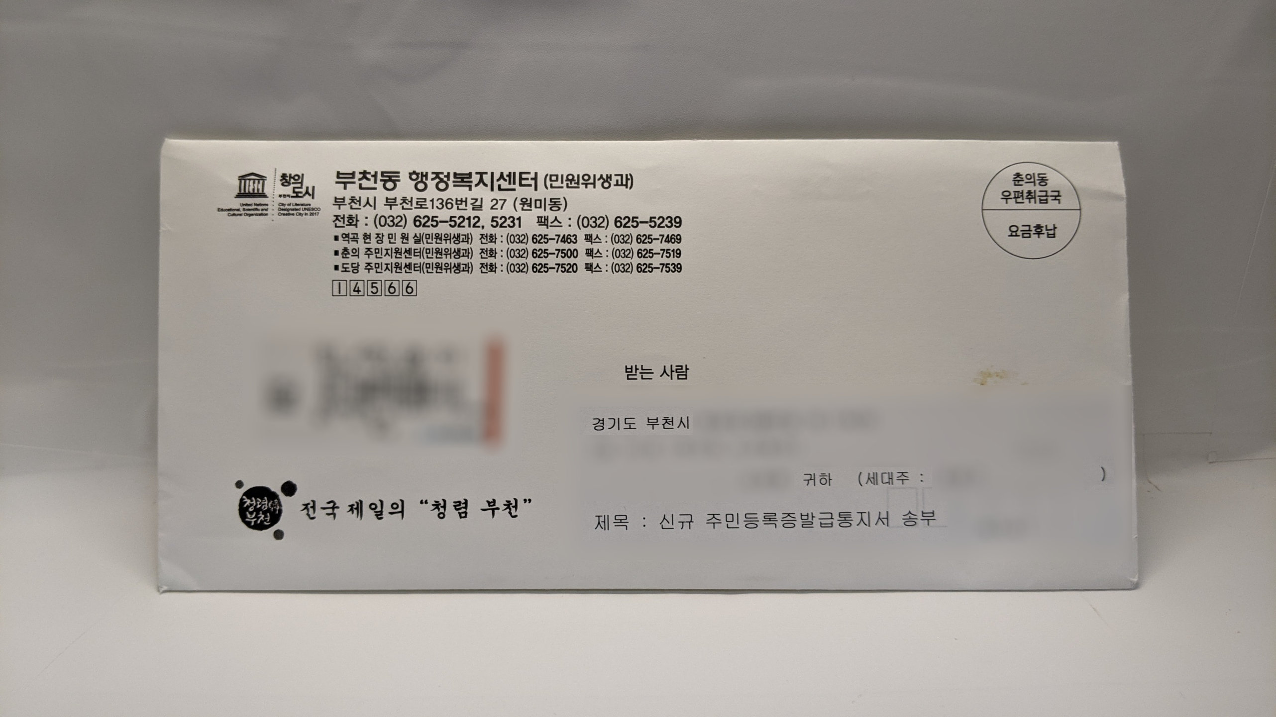 이건 부천시가 특이한 거라 타 지역 거주자들은 받을 일이 없는 종이입니다.