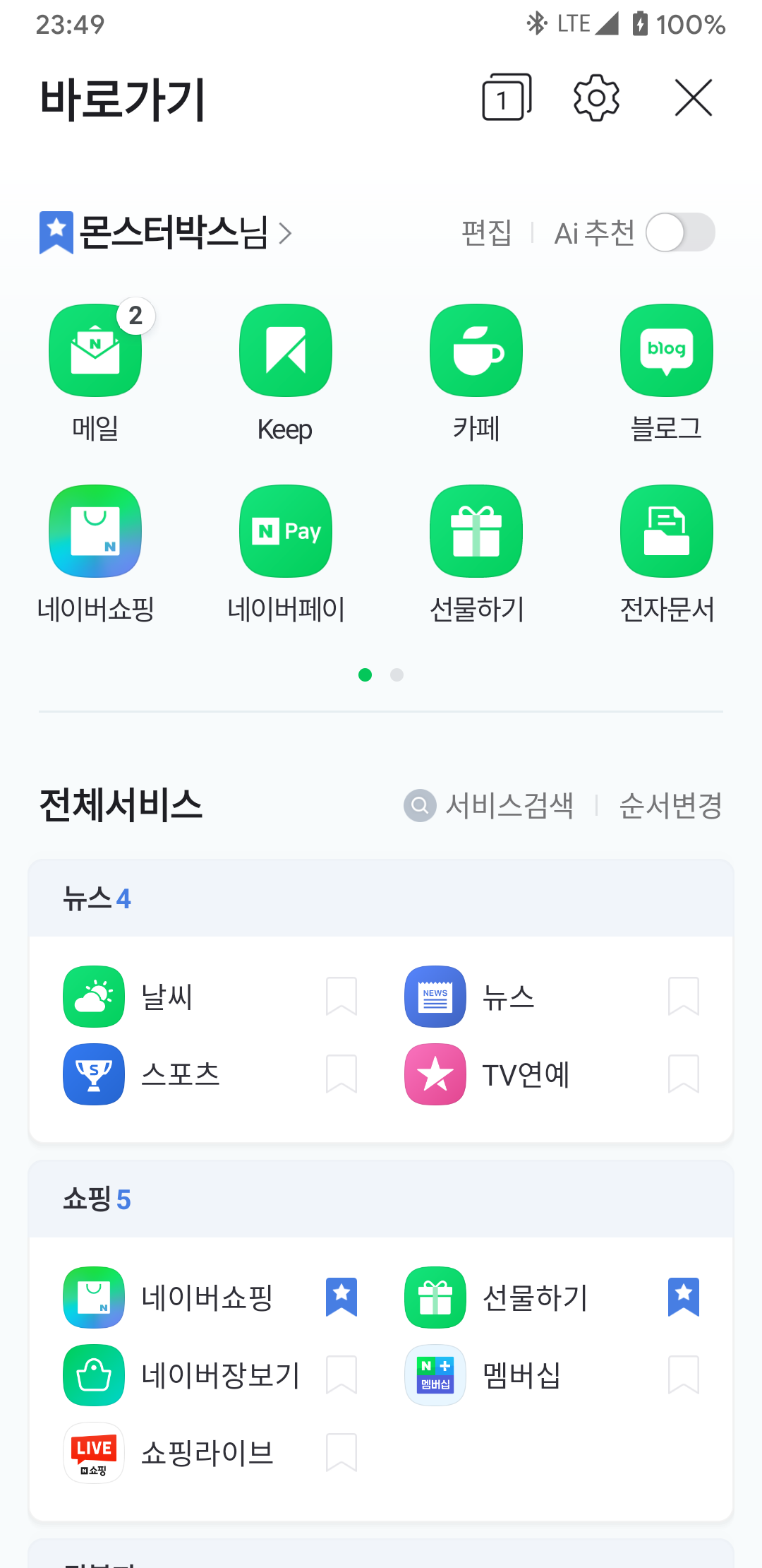 그래서 이번엔 네이버 앱에서 등록을 해보려고 합니다.