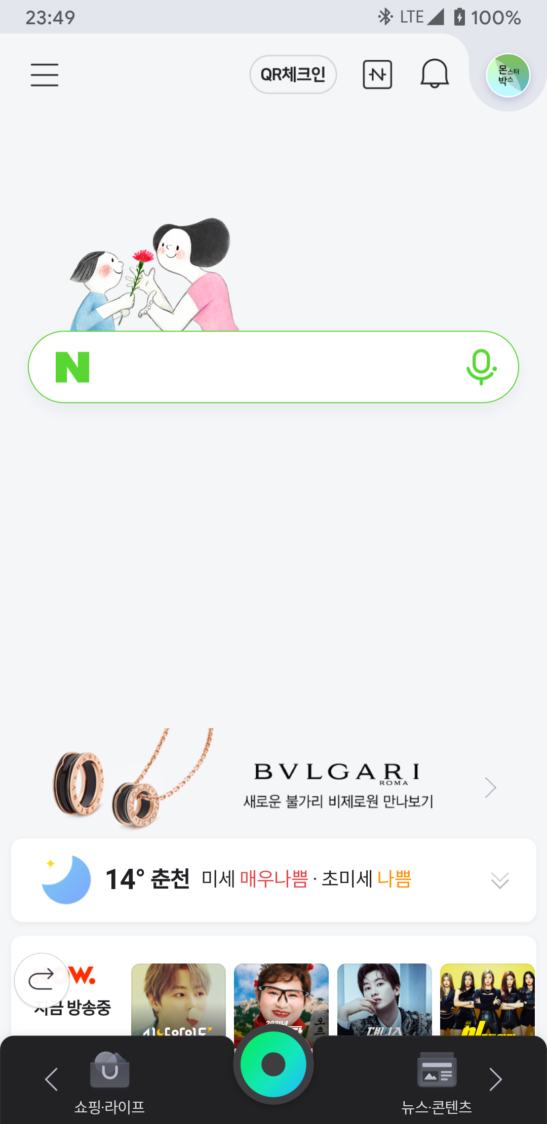 우선, 네이버 앱에 들어가서, 왼쪽 위 메뉴 버튼을 눌러줍니다.