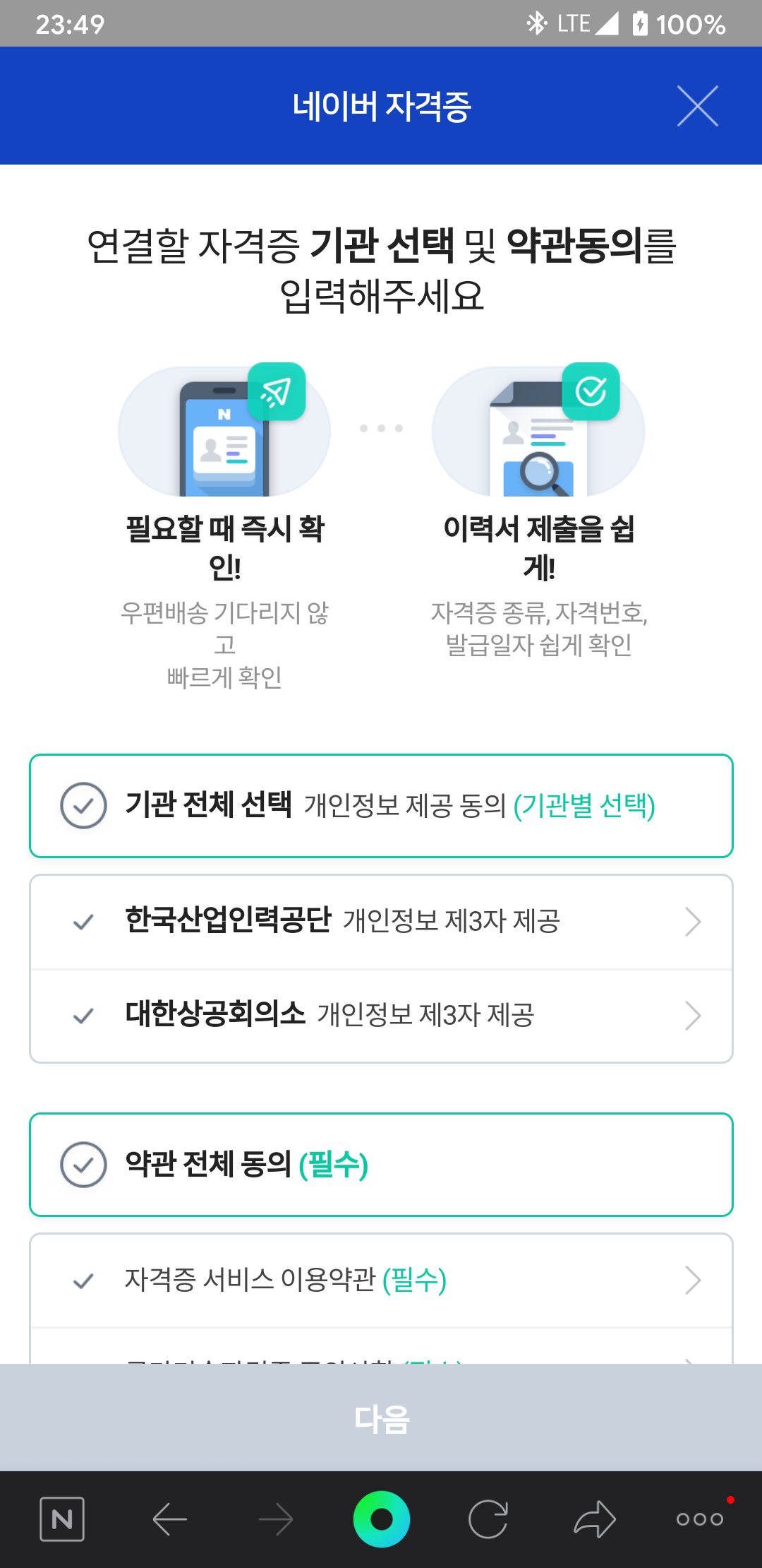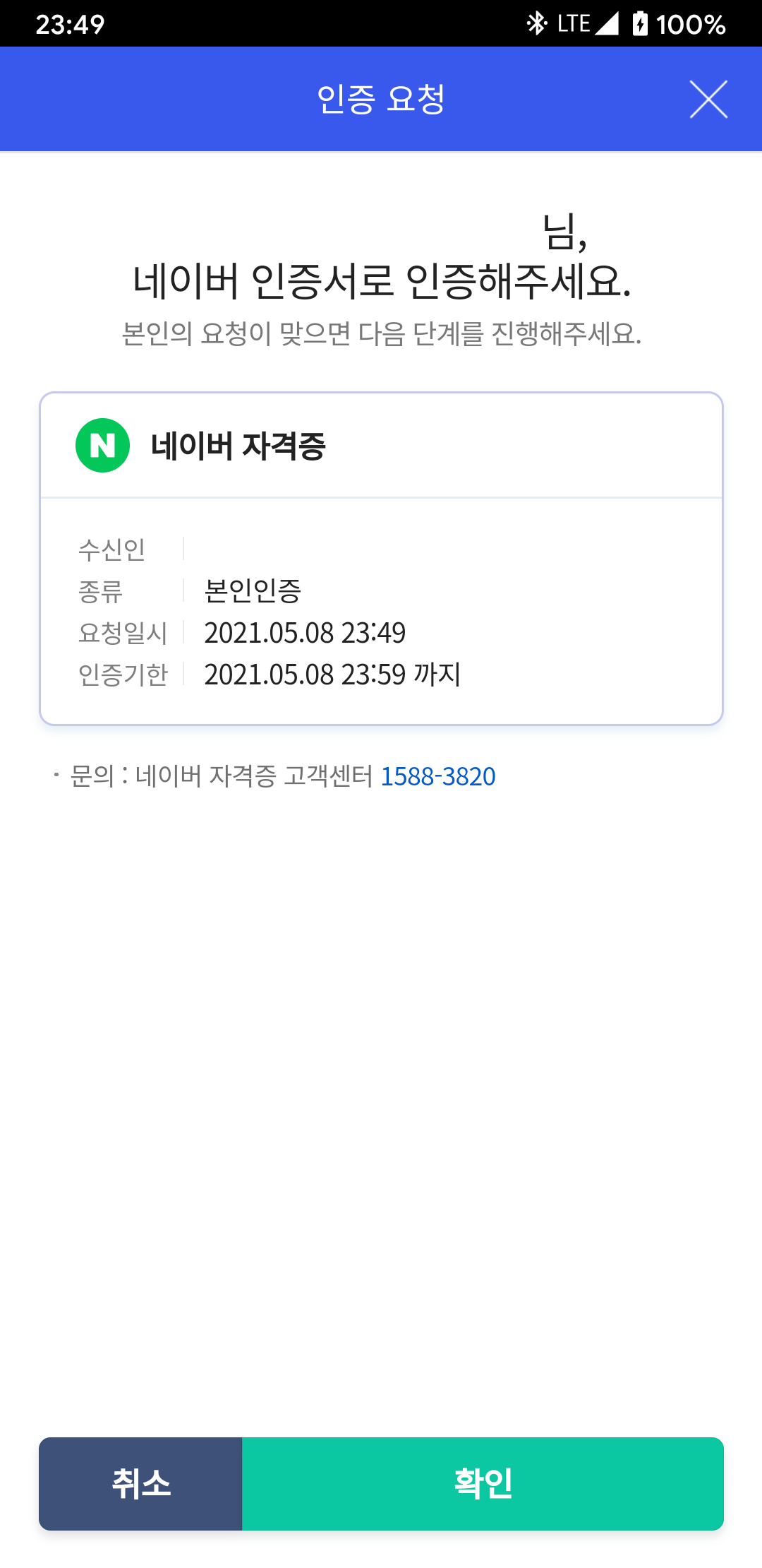 그런 후, 네이버 인증서로 인증을 해줍니다.